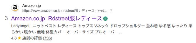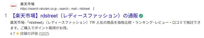 検索表示では、楽天やアマゾンに【rdstreet】のアイテムがあるように提示されています。